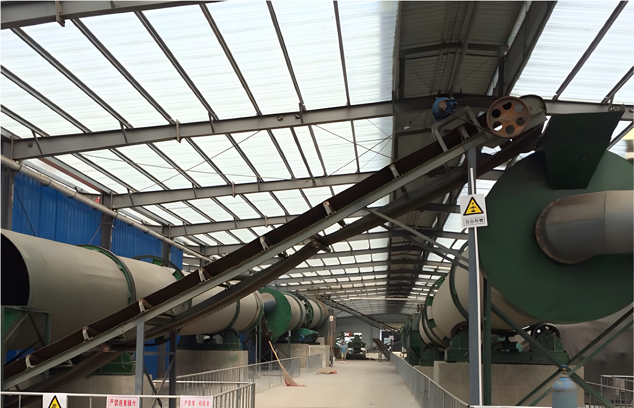 The rotary drum granulator consists of a rotary drum, a transmission system, a feeding device, a discharging device, a plate copying device, and other components. Powdered phosphate raw materials and additives (such as binders, lubricants, etc.) are metered and transported to the drum through the feeding device. The drum rotates around its own axis at a certain speed under the drive of the transmission system.
